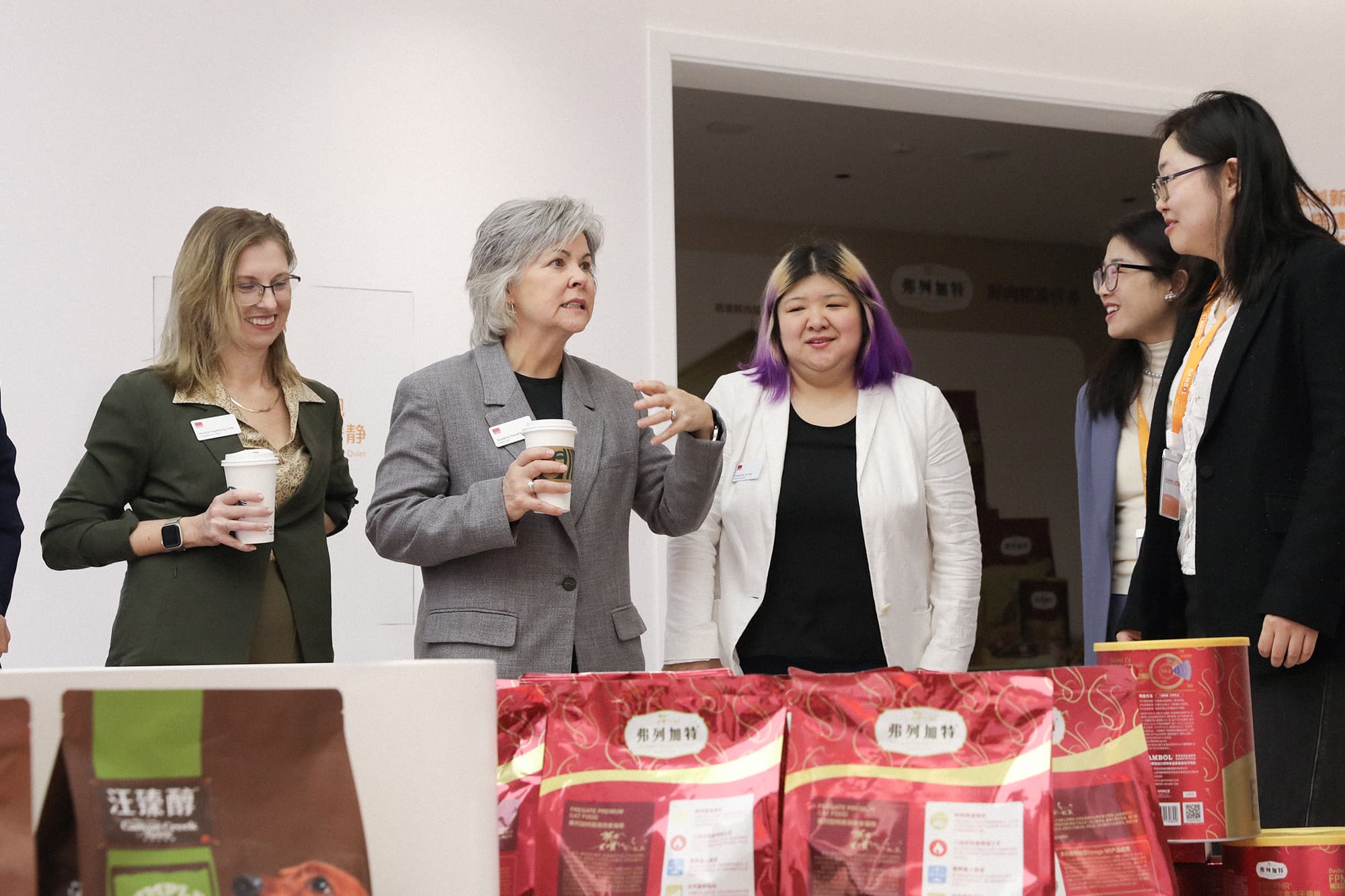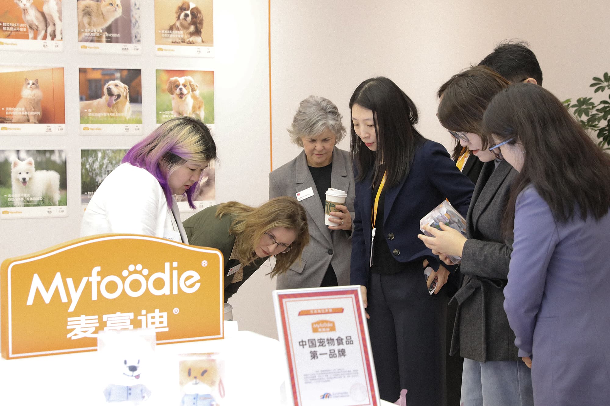 AAHA董事会现任主席 Dr. Parva Bezrutczyk 、首席医疗官Dr. Jessica Vogelsang、首席认证官Jessica Wu、大中华区 CEO毛本浩Benjamin Mao与乖宝宠物董事长秦华、CEO杜欣芳、研发总工程师陈金发共同见证这一重要时刻。
